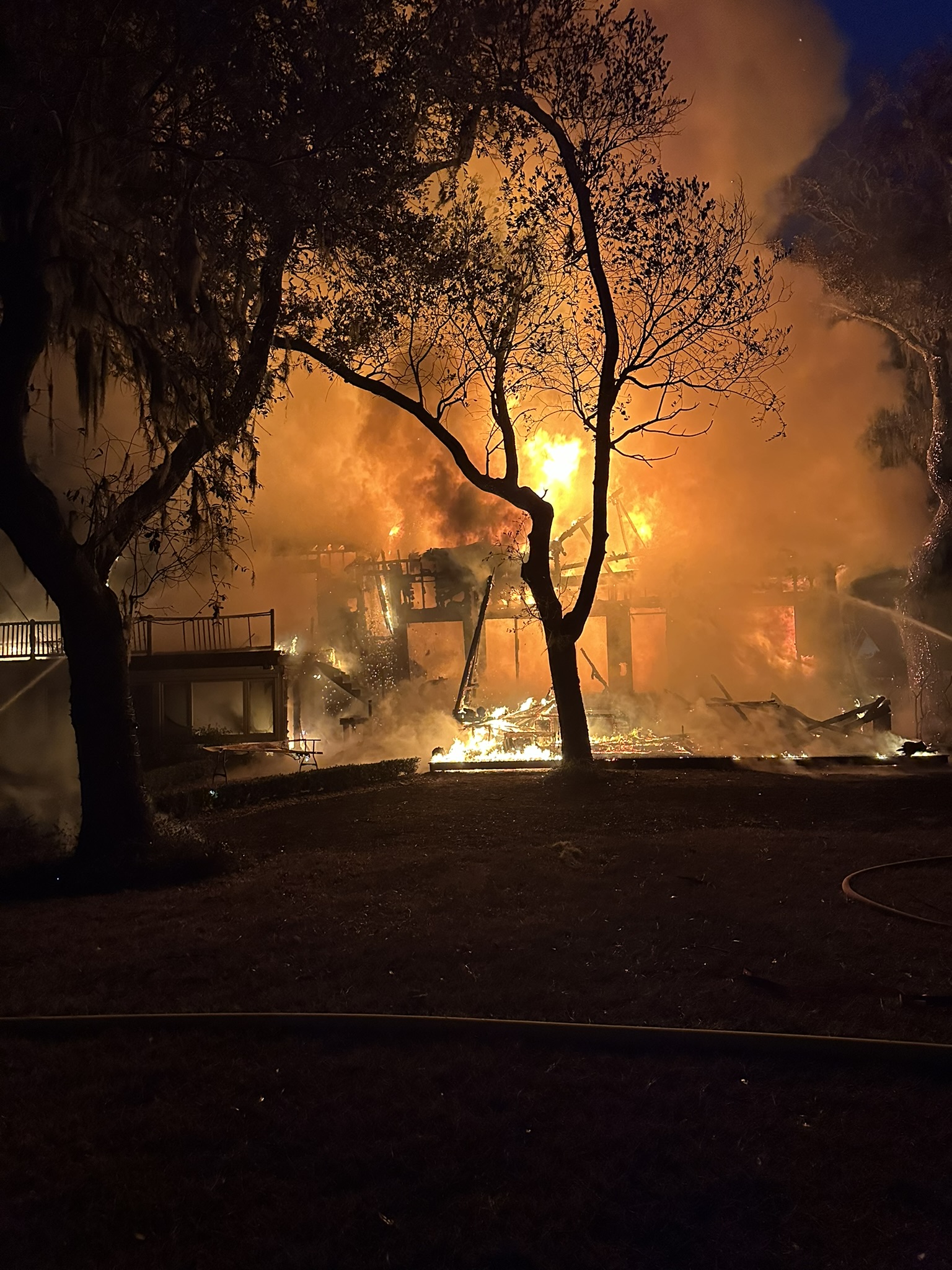 Several other homes close to the residence were evacuated as a precaution due to concerns with two large propane tanks on the property. The evacuation was completed safely, and firefighters remained on scene throughout the night to extinguish hot spots and ensure no additional homes were threatened.
